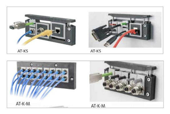 By utilising IMAS grommets, connectors can be integrated directly into the cable entry frame, eliminating the need for separate connector cut-outs and providing a space-saving solution; supporting thread sizes from M12 to M25 (AT-M / AT-K-M), it also enables snap-in assembly of Keystone couplers (AT-KS) and seamless integration of push-pull connectors.